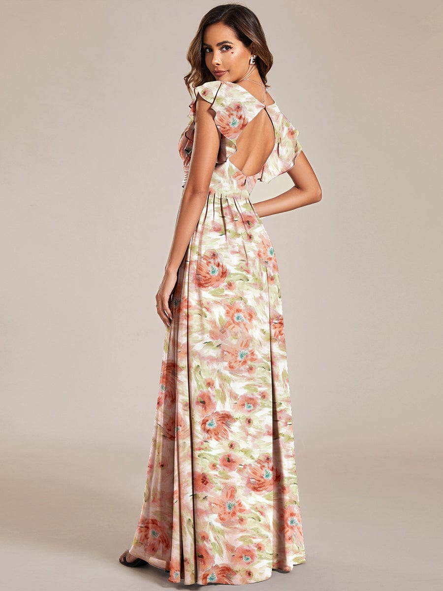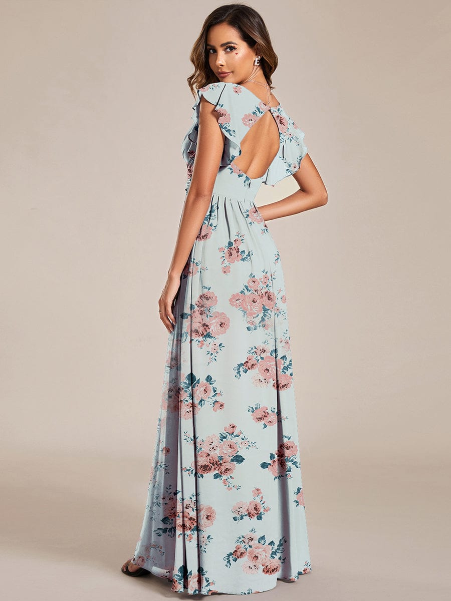 Behold our enchanting Back Cutout A-Line Pleated Ruffles Sleeve Chiffon Bridesmaid Dress! This breathtaking dress is the perfect choice for any bridesmaid who wants to look stunning and sophisticated. The chiffon material flows elegantly, creating a dramatic effect as you move. The A-Line design flatters all body types while the pleated ruffles sleeves add a touch of romance and create a whimsical look. The back cutout design adds a sexy and daring flair, making it perfect for any formal occasions such as weddings or proms. Available in a range of colors, you're sure to find the perfect match to suit the wedding theme. Our expert craftsmanship ensure that this dress not only looks amazing but is also comfortable to wear all day long. If you want to make a lasting impression at any special event, order this dress today and get ready to turn heads.