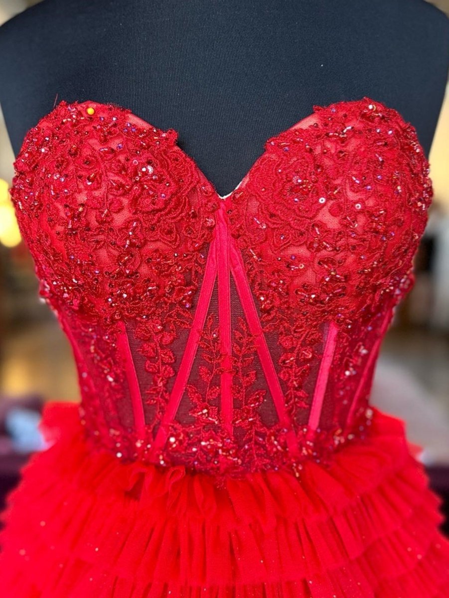 Adelyn |A-Line Sweetheart Tiered Long Tulle Prom Dress