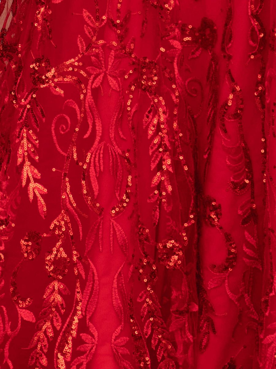 Elevate your evening with Avianna, the epitome of opulence. Rendered in shimmering sequined lace fabric, this dress is more than just attire—it's a statement. Its royal blue and vibrant red hues capture the essence of elegance and power, and the mermaid silhouette flawlessly outlines every curve, revealing a playful sweep train. The deep V neckline offers a tasteful tease, complemented by a delicate open back that meets a secure zipper closure. Avianna is the perfect choice for formal dresses, blending sophistication with boldness. But it's the audacious slit that sets the tone for a night of glamour and admiration, making this dress a stunning option for evening dresses!