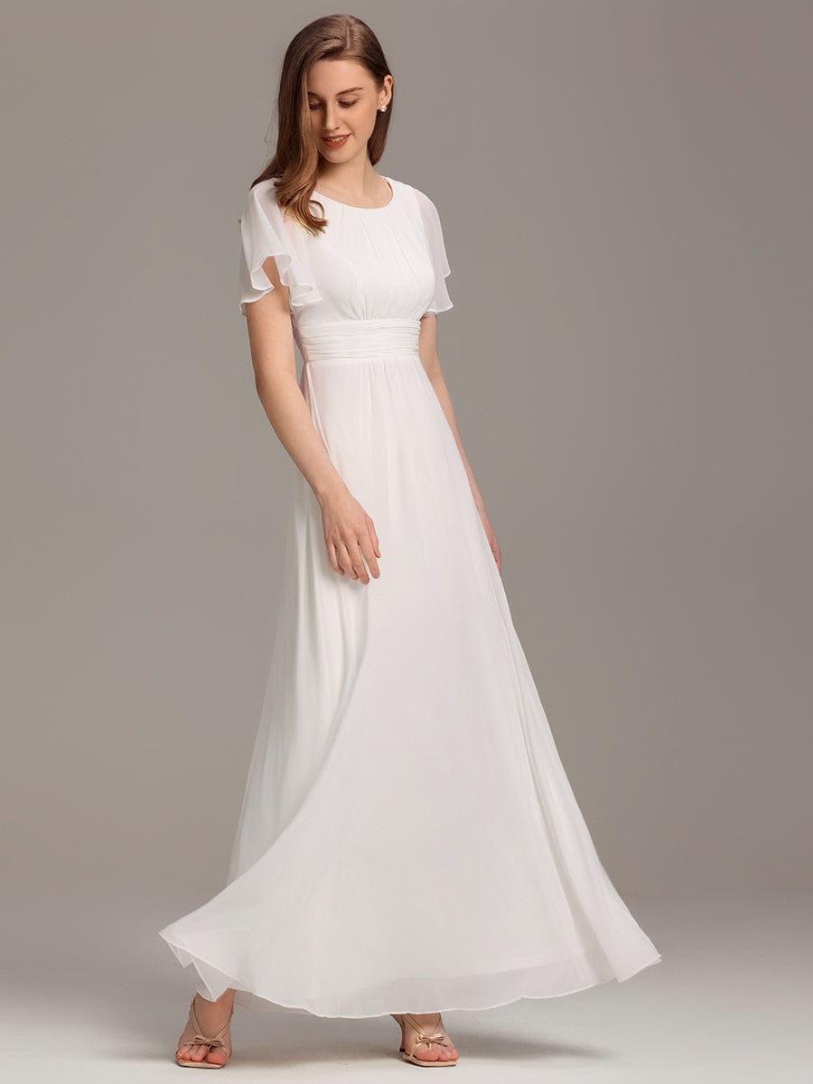 Introducing our this dress, the perfect choice for any curvy bridesmaid who wants to look beautiful and feel comfortable on the big day. The A-line silhouette and pleated chiffon fabric flow gently over curves, creating a stunning and flattering shape for any body type. The round neckline adds an extra touch of class to this timeless design, making it perfect for any formal occasion. The dress is available in a variety of sizes, catering to all curvy body shapes, ensuring that each and every bridesmaid can feel confident and beautiful. Crafted from chiffon fabric, this dress feels light and airy on your skin, making it breathable and comfortable to wear all day and night. Whether it's a beach wedding or a grand ballroom affair, this dress will make you feel like a million dollars. So go ahead and treat yourself, order your Simple Chiffon Pleated A-Line Round Neckline Bridesmaid Dress today and be the envy of every bridesmaid in the room!