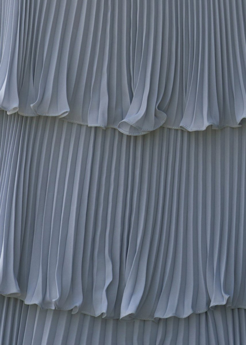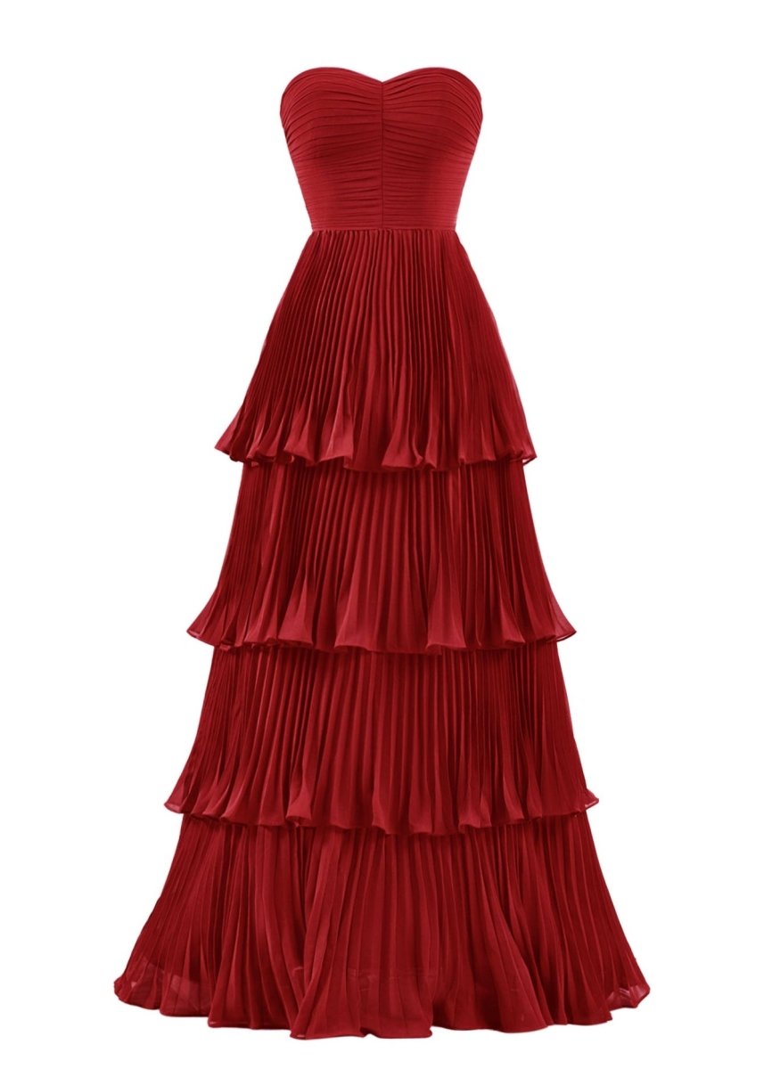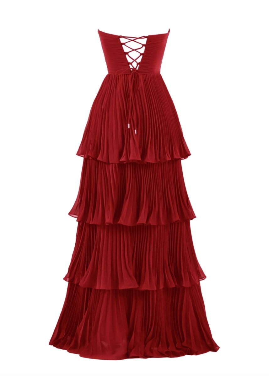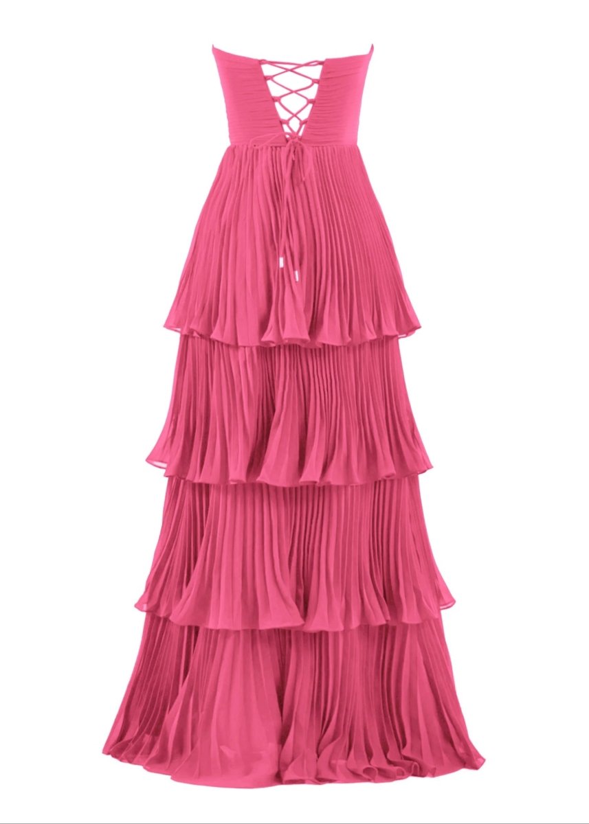 - Embellishment: Pleats & Multi-Tiered Ruffles